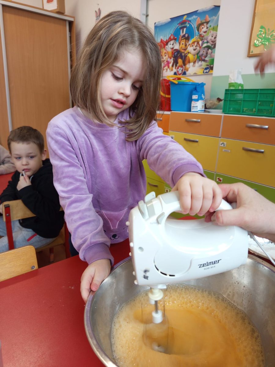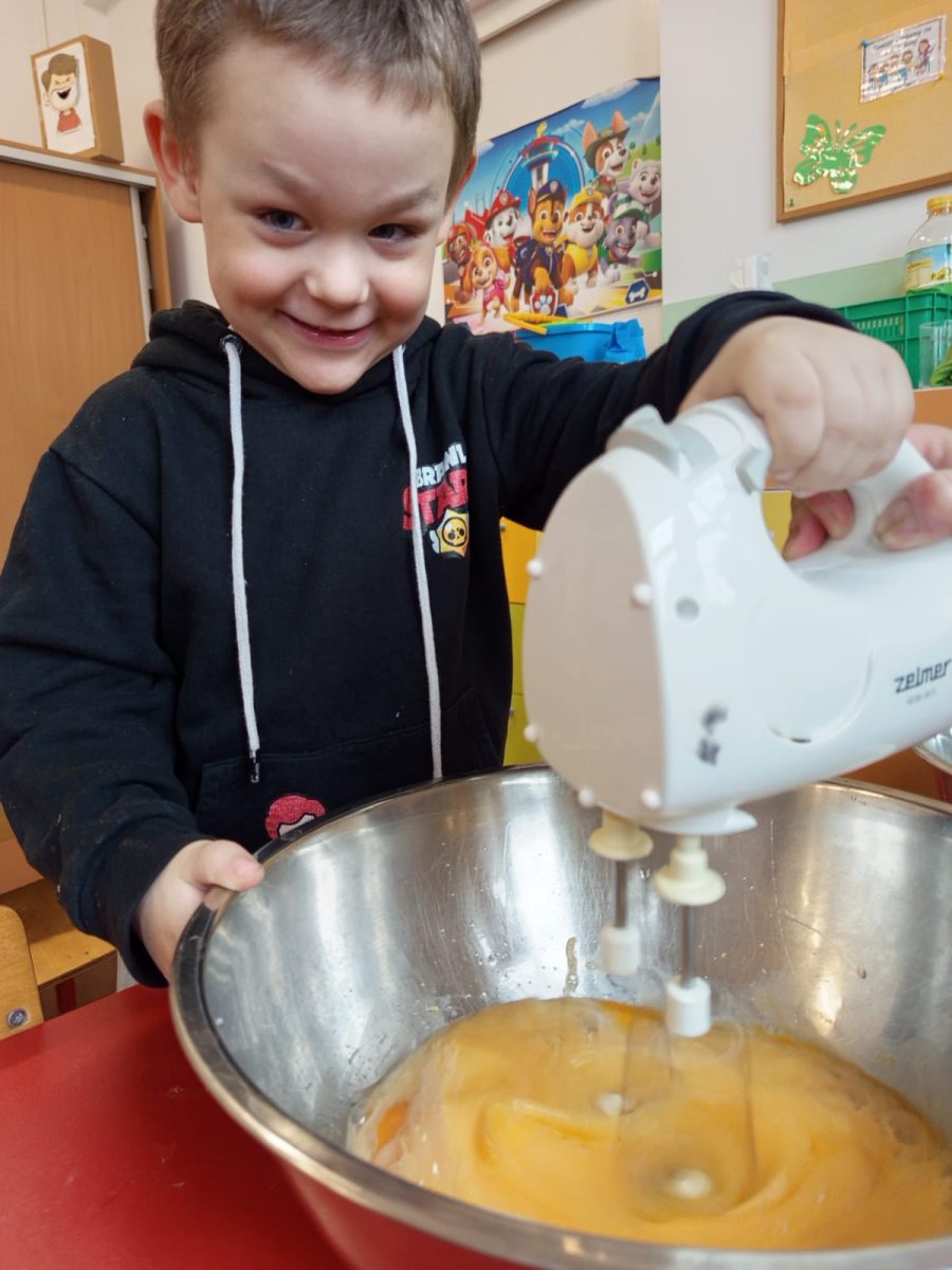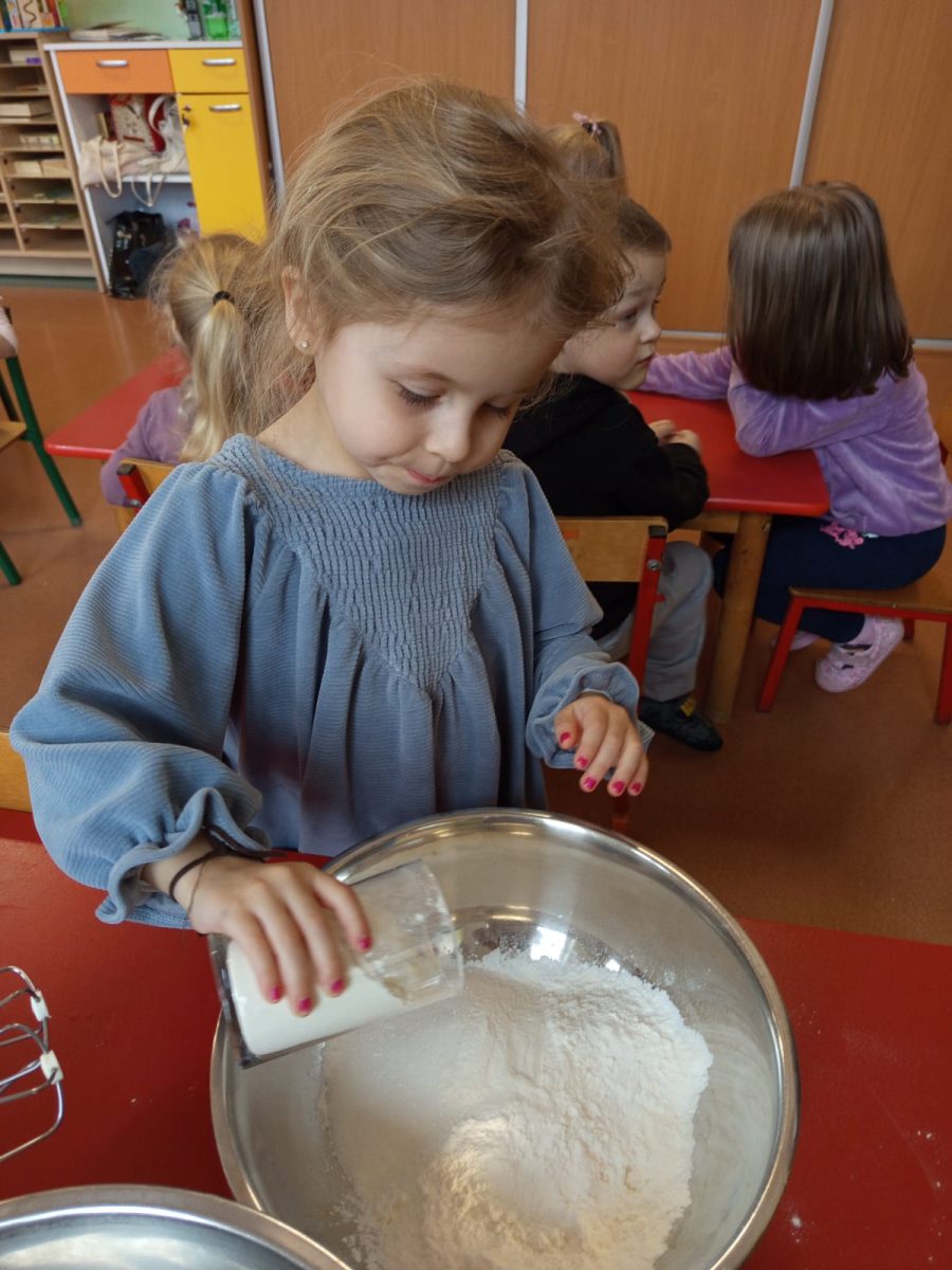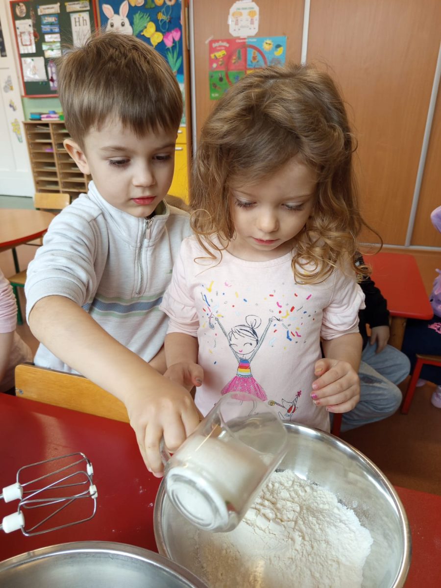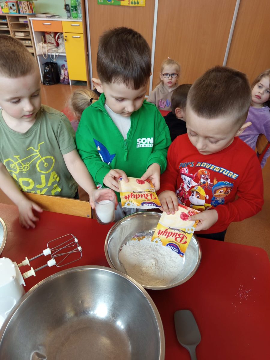 Szczególnie dużo radości sprawiły zajęcia kulinarne w młodszej grupie. Dzieci z zapałem przygotowywały świąteczne wypieki, ucząc się współpracy i rozwijając swoje umiejętności praktyczne.