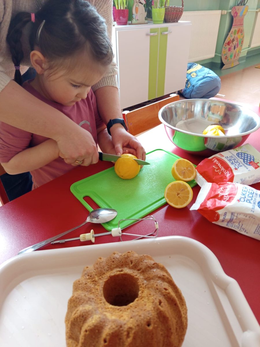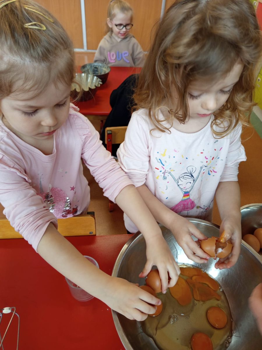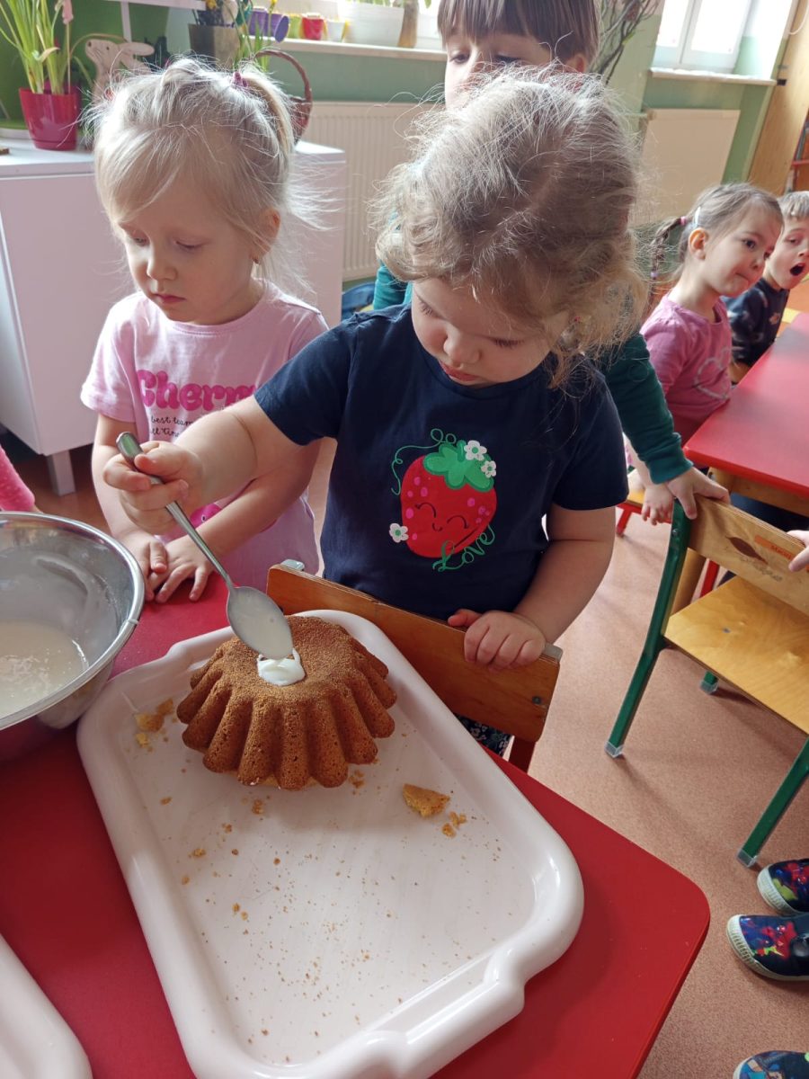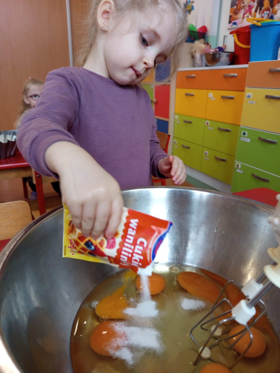 Szczególnie dużo radości sprawiły zajęcia kulinarne w młodszej grupie. Dzieci z zapałem przygotowywały świąteczne wypieki, ucząc się współpracy i rozwijając swoje umiejętności praktyczne.