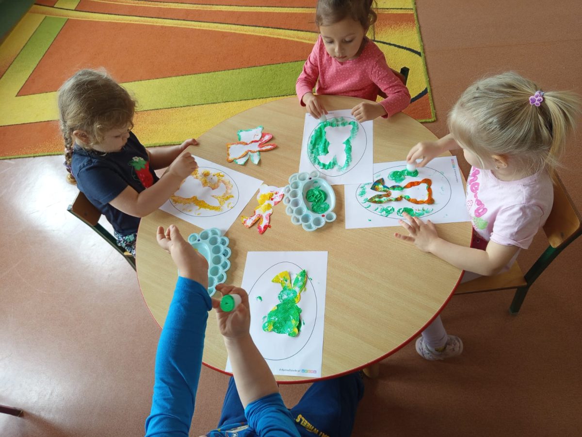 Podczas zajęć dydaktycznych przedszkolaki poznawały tradycje wielkanocne. Było dużo rozmów, zabaw i aktywności związanych z tym wyjątkowym czasem.
