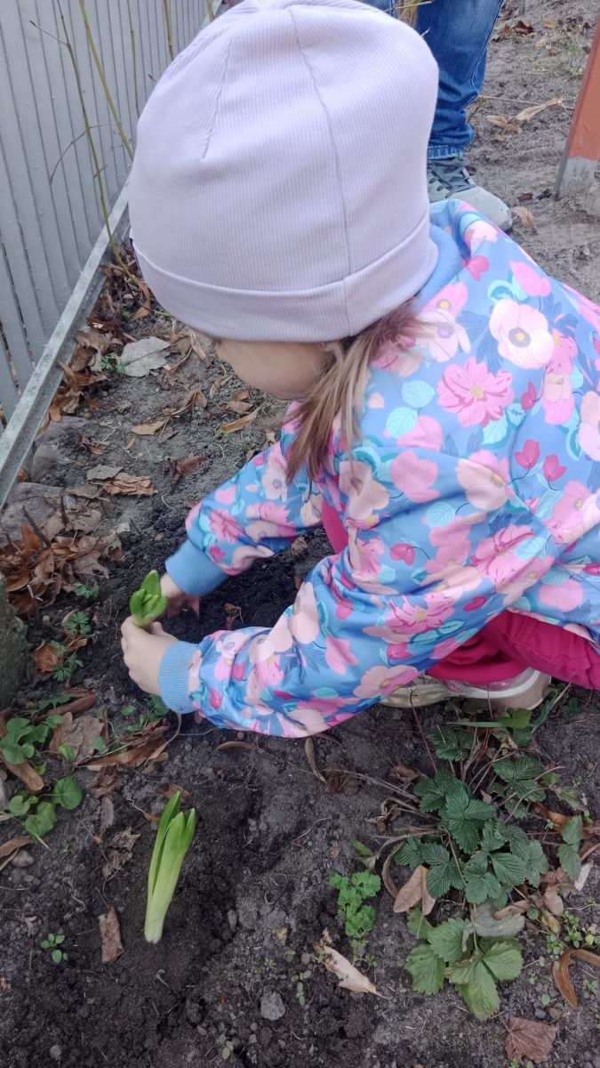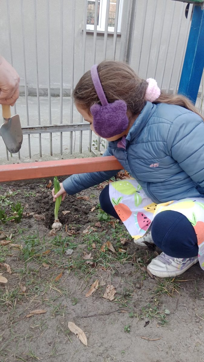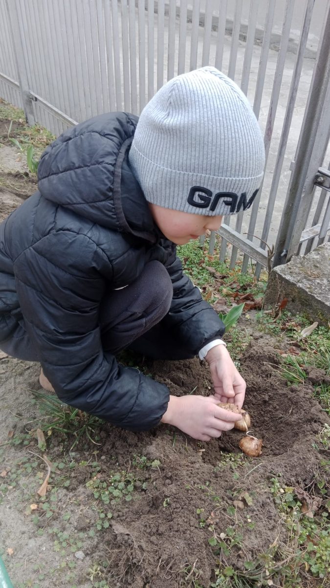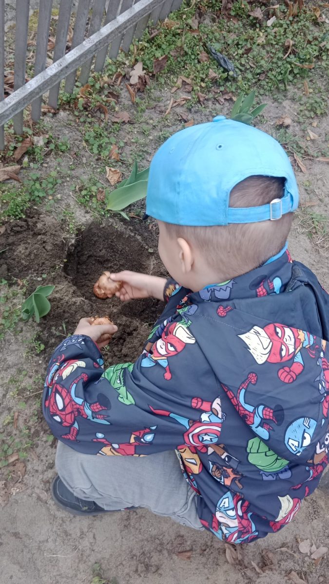 W tym tygodniu Zuchy w ramach zajęć wybrały się na plac zabaw, aby wspólnie posadzić cebulki kwiatów w ziemi. Dzieci przygotowywały grządki, posadziły dbając o to, aby każdy kwiatek miał odpowiednie miejsce. Dzięki wspólnej pracy nasz plac wkrótce będzie pięknie ozdobiony kolorowymi kwiatami, które będą cieszyć oko wszystkich dzieci.