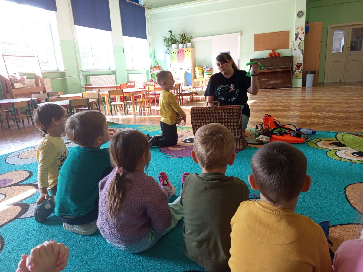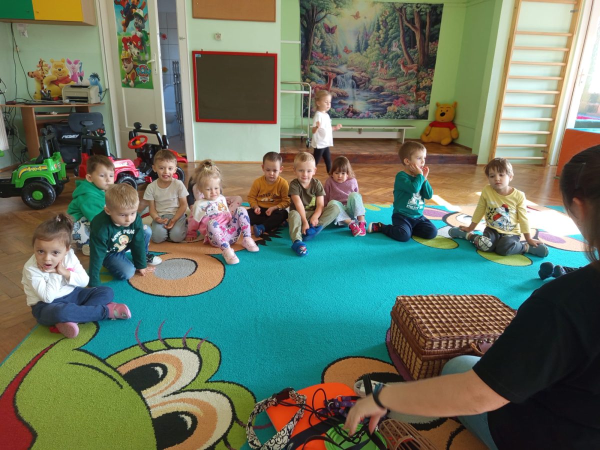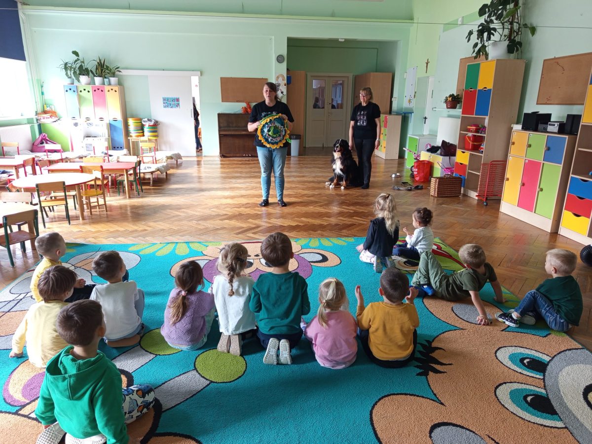 W dniu 8 października dzieci z naszego przedszkola uczestniczyły w swoich pierwszych zajęciach w tym roku szkolnym z dogoterapii. Na spotkanie przybyła sunia wraz ze swoją opiekunką. Przedszkolaki z dużym zainteresowaniem wysłuchały informacji o tym, jak należy opiekować się psem oraz jak bezpiecznie się z nim bawić. Każde dziecko miało okazję pogłaskać i nakarmić pieska, co sprawiło im wiele radości. Zajęcia przebiegły w miłej i spokojnej atmosferze, a dzieci już nie mogą doczekać się kolejnego spotkania.